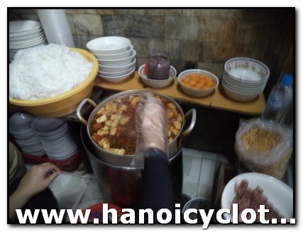 20. Tao pho: This is a unique food of Northern of Vietnam for Hot summer, the ingredient as tofu but near the last step to make tofu. The saler will slice Tao Pho to bowl, then pour flower sugar and ice to make a bowl of cool Tao pho. The price is about 5000- 7000VND/ bowl. You can find them on Hang Rong on streets of Hanoi with unique sound “ Tao Pho de”. Street food Hanoi Shops located at many narrow street of old quarter Hanoi